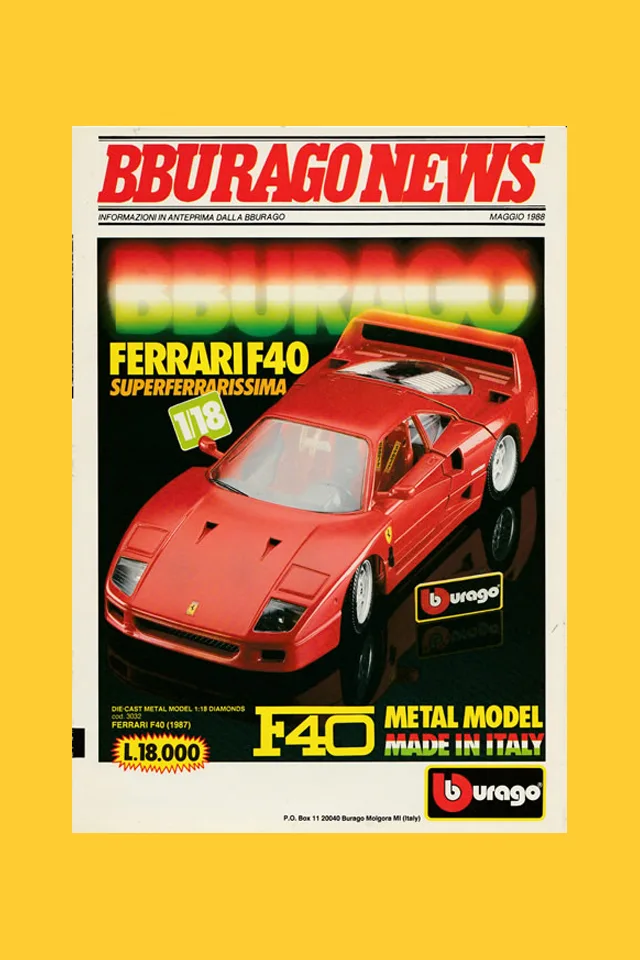 Quattroroutine specialist magazine was one of the first to showcase BBurago’s F40, featuring it on the cover of its second issue of 1988 (April-June). BBurago News officially announced it in May of that year, and it became the novelty of the season.