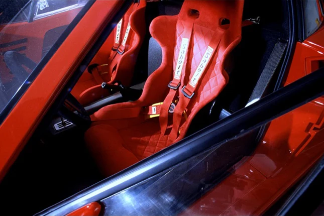 Inside, the placement of the fuse board in the glovebox area is the detail that most closely connects to the early stages of the F40 project, as it is an original feature of the 1986 Ferrari GTO Evoluzione (the model from which it derives) and was not longer used.