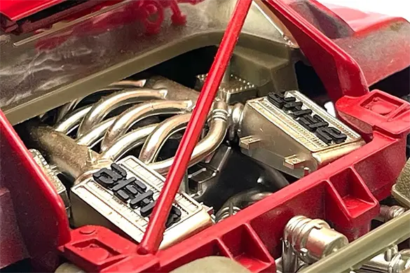 The tubular intake manifolds are indicative of BBurago’s focus on reproducing one of the first F40 prototypes.