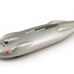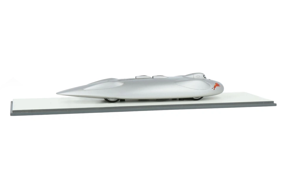 In its second evolution, the Railton Special was sponsored by Mobil in order to break its own speed record (set in 1938). After World War II, this vehicle designed by Reid Railton set off for the Bonneville Salt Flats in 1947 where, driven by John Cobb, broke its own record with a speed of 394.19 mph / 634.39 km/h (in the lap left behing the legendary 400 mph barrier). This record would remain unbroken for no less than 18 years.