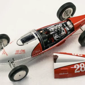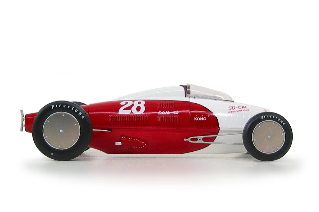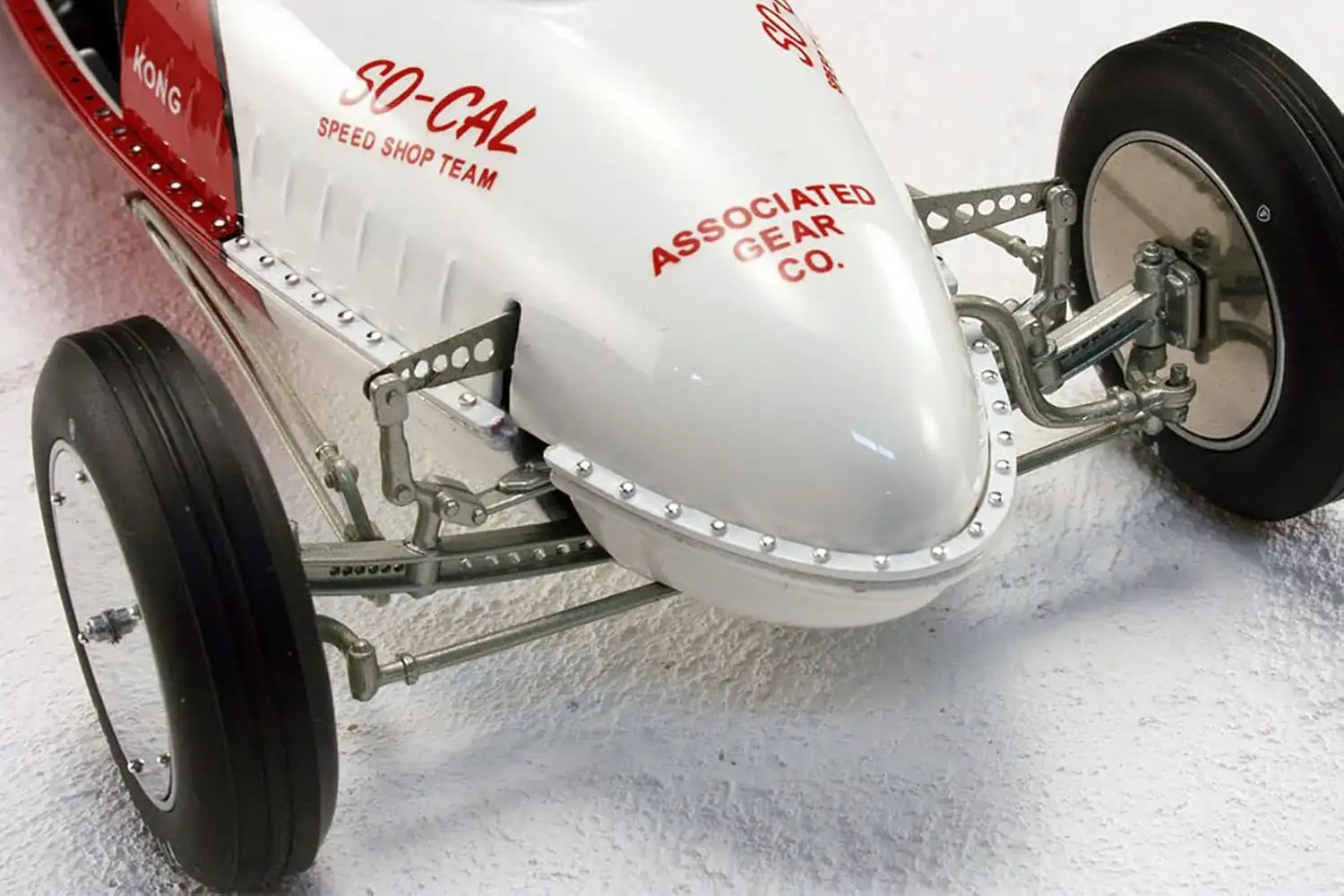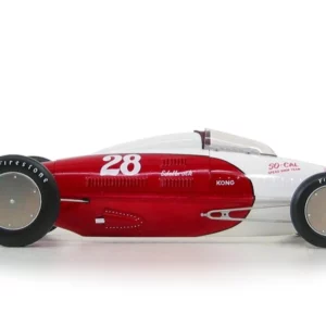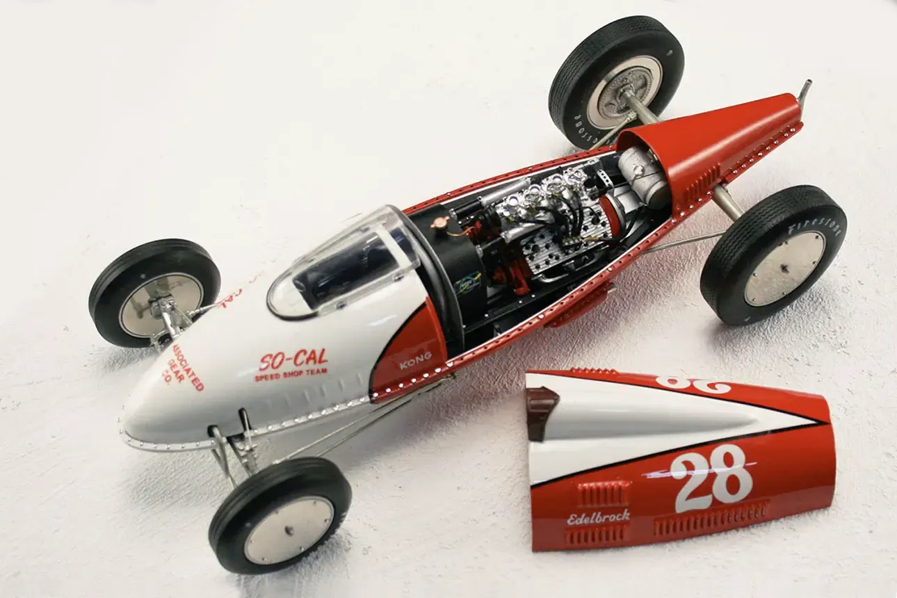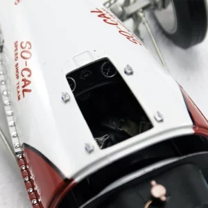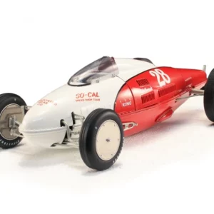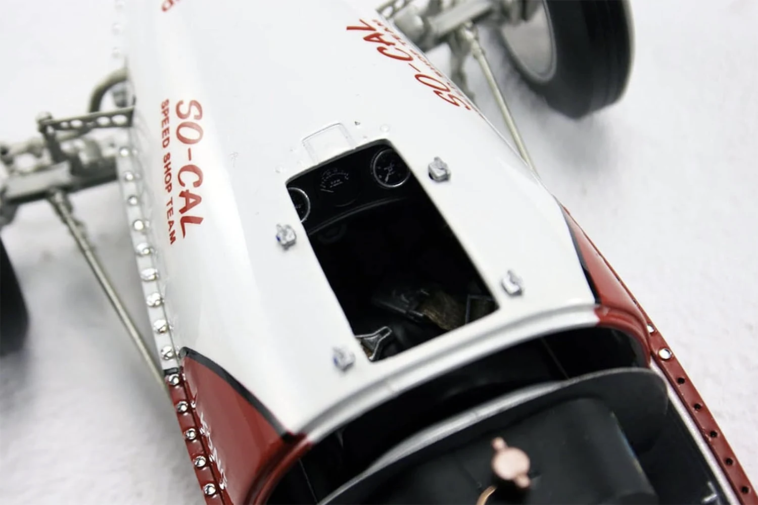 One of the most famous ‘lakesters’ of the Hot Rod era. These ingenious vehicles, made from auxiliary petrol tanks (sourced from old Second World War aircrafts), set numerous speed records in the United States. ACME presents this detailed model car of one of the most famous belly tank racers: the one built by Alex Xydias’ So-Cal Speed Shop Team, which reached a record speed of 198.34 mph (319.12 km/h) in 1952 on the Bonneville Salt Flats.
