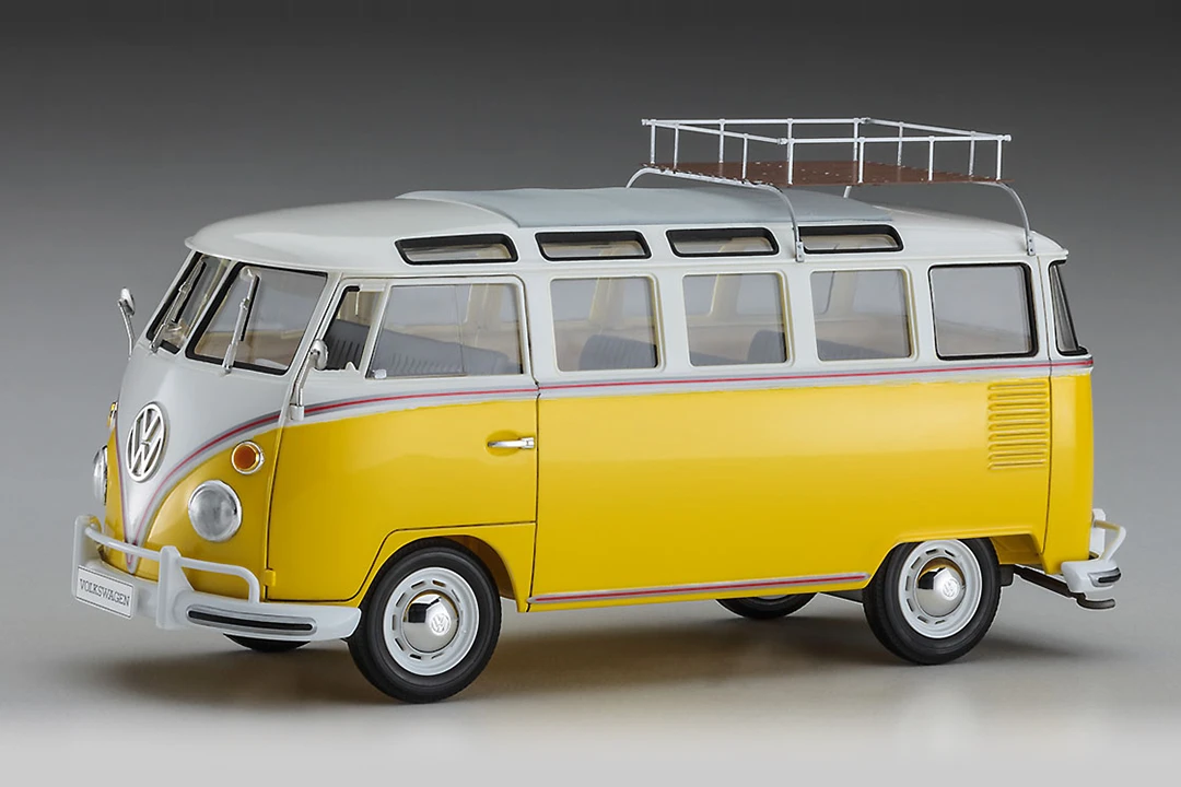 One of the most unusual versions of the famous Volkswagen Transporter is the so-called ‘Samba’, which Hasegawa reproduces here in its first ‘23-window’ version. It was the most luxurious variant in the range, optimised with three rows of seats for passenger transport. This kit gives you the option of making the side doors and rear bonnet operational.