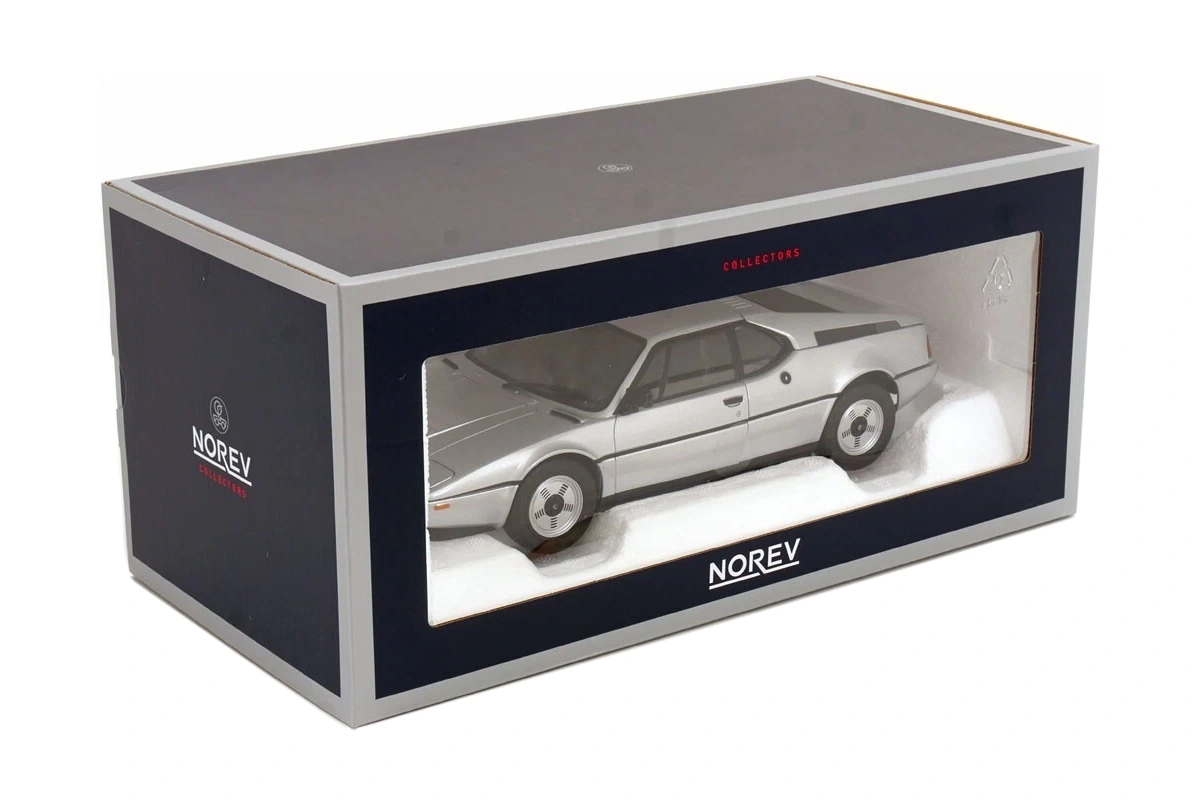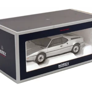 BMW’s first supercar, designed by Italdesign and developed by Lamborghini. Norev presents this model car in 1/18 scale with working pop-up headlights and carpeted interior details.
