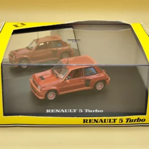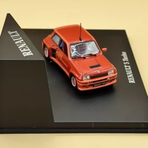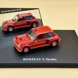 Road version of the legendary Renault 5 Turbo. Initially launched in only two colours, this miniature from Universal Hobbies shows the ‘Grenade’ Red. Get this 1/43 model car of the genuine ‘5 Turbo’ first series, the real Group 4 homologation version.