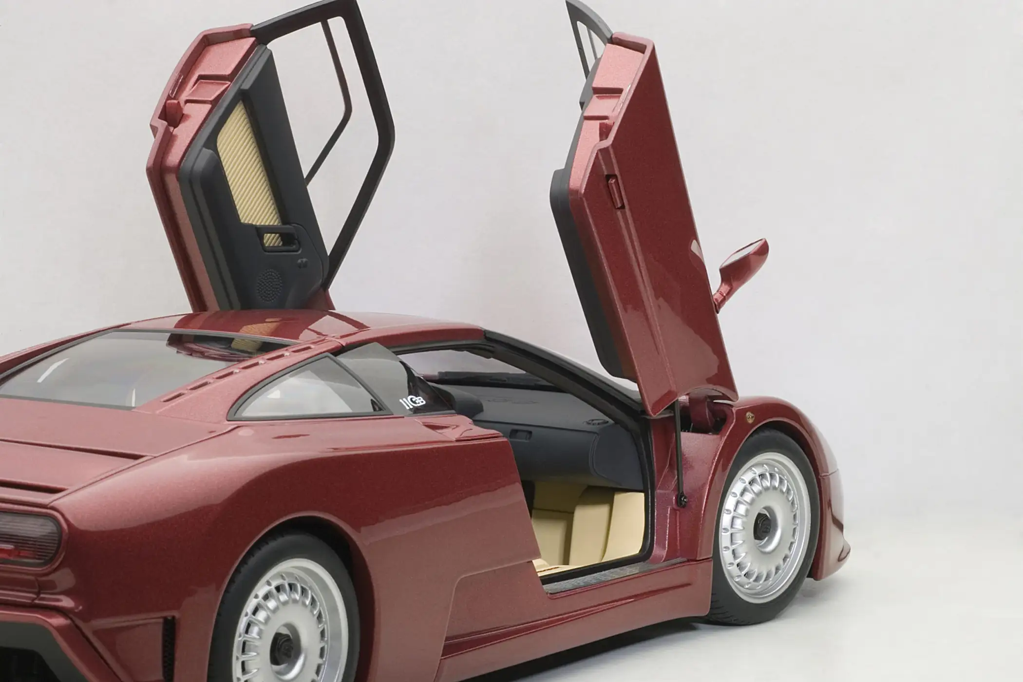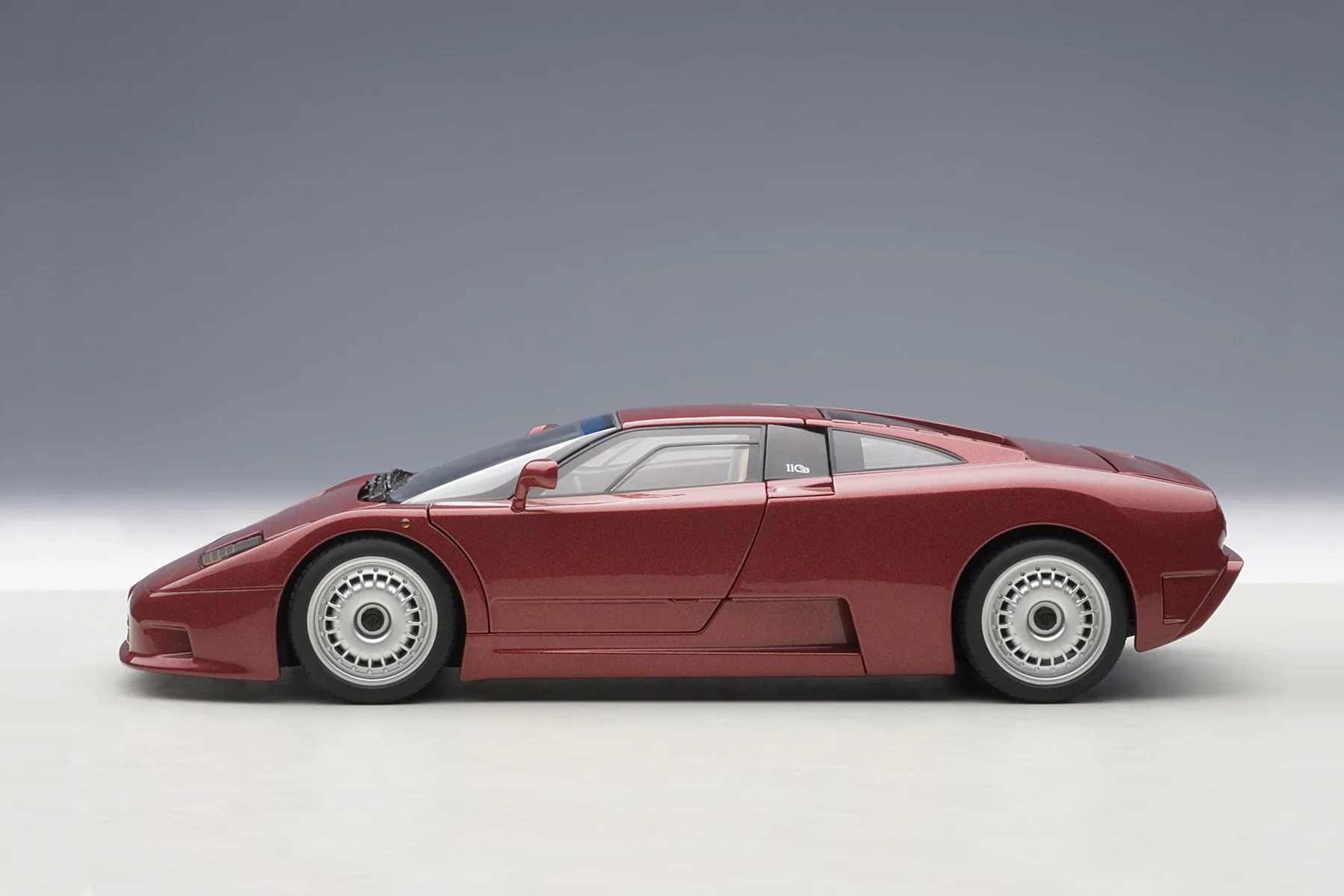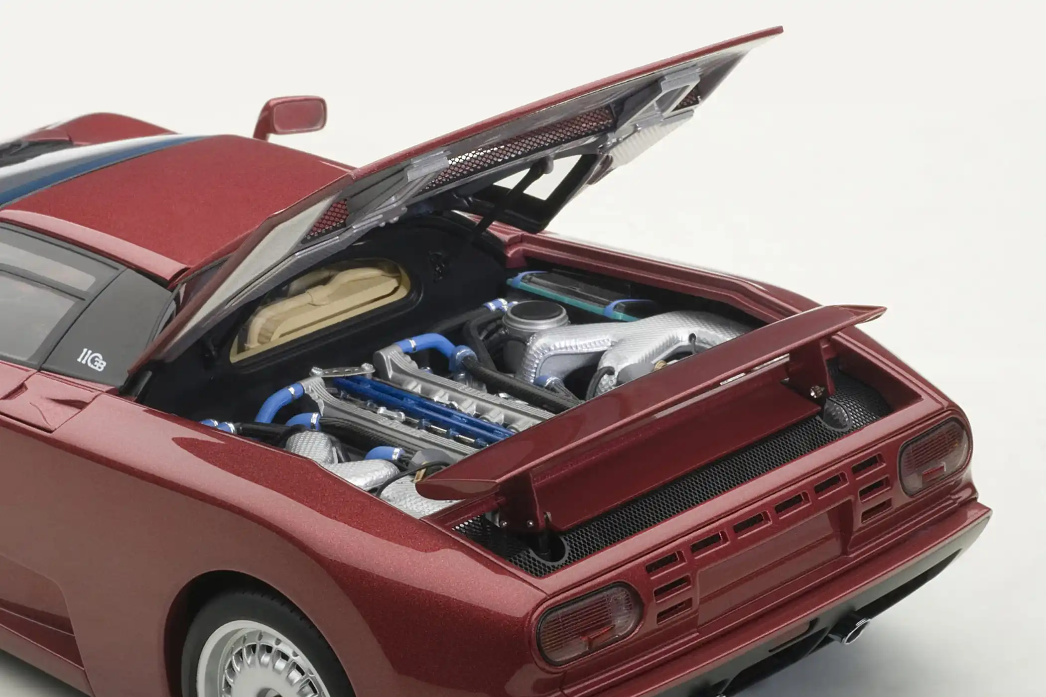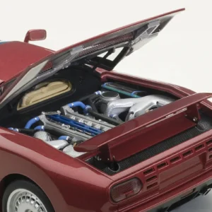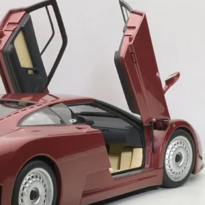 The EB110 model marked Bugatti’s italian rebirth, which was acquired by industrialist Romano Artioli in the late 1980s. This four-wheel-drive supercar with a 3.5 V12 engine and four turbochargers promised the best performance in order to lead the category reserved for Ferrari and Lamborghini. Despite the investment and team’s efforts, this venture lasted only four years. Autoart reproduces the 560 PS ‘GT’ version with its usual high quality level.
