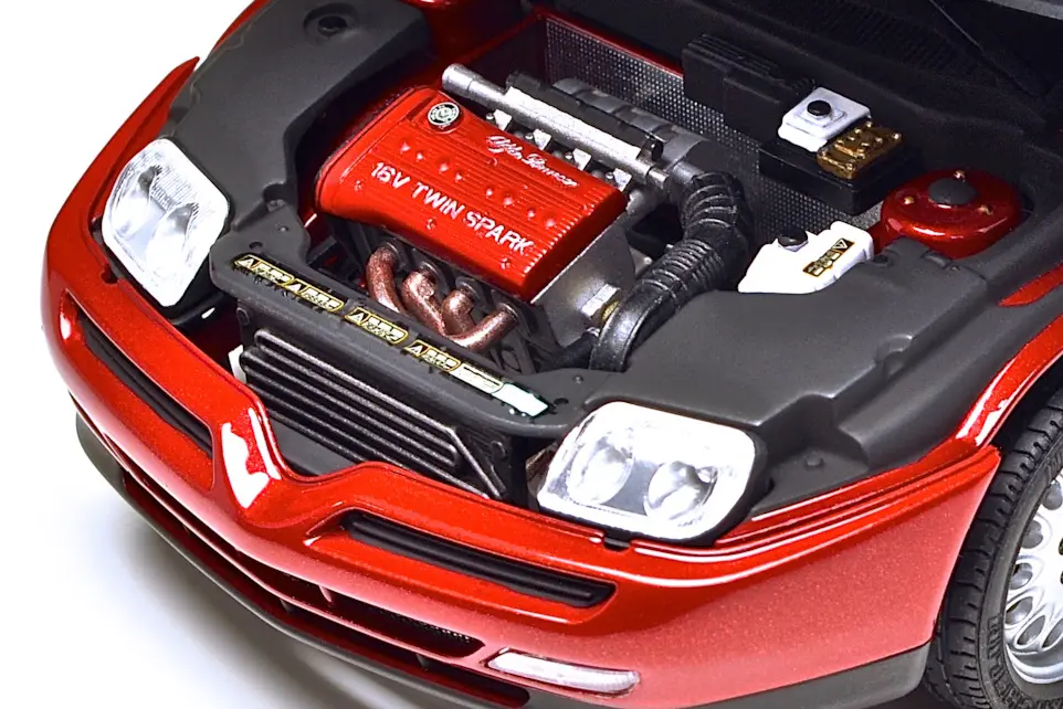 Alfa Romeo revives the 2+2 packaging abandoned in the previous GTV, achieving a compact and modern design with the help of Pininfarina. The entire interior and other design details were created by the brand’s own Centro Stile. Tamiya offers us the coupé version, as launched in 1994.