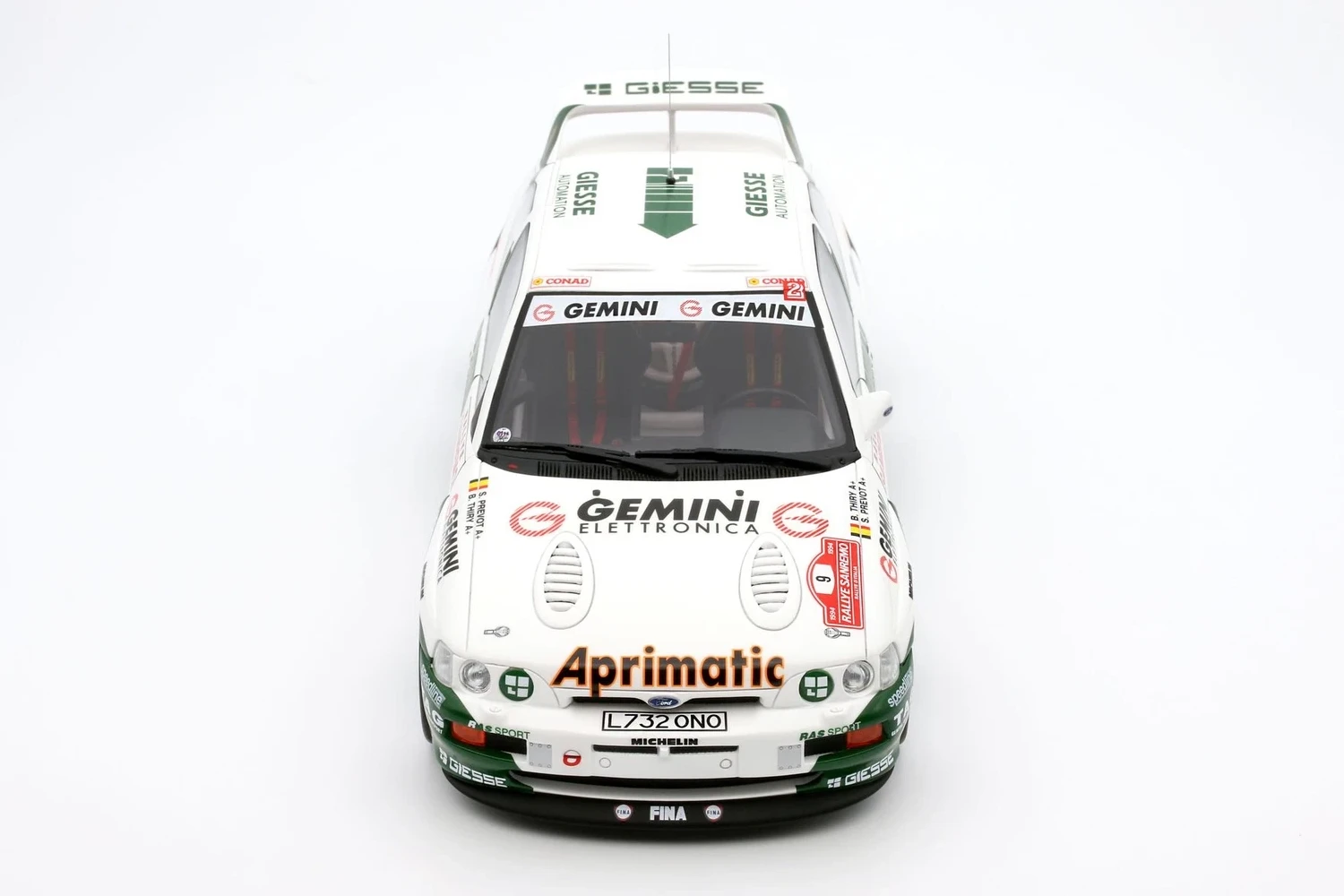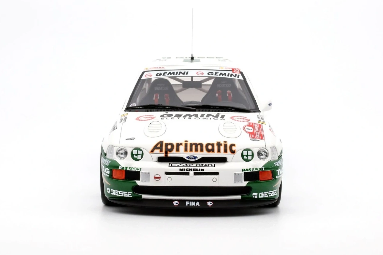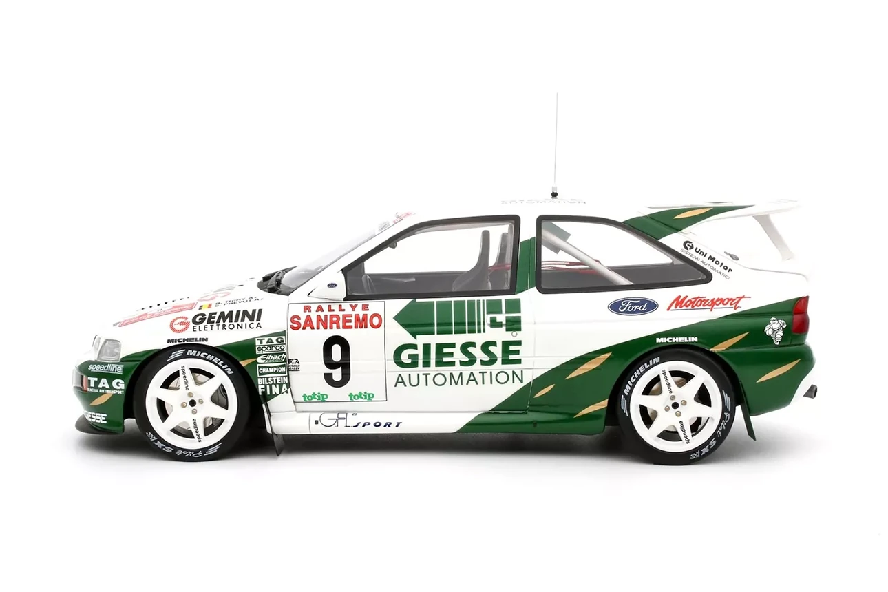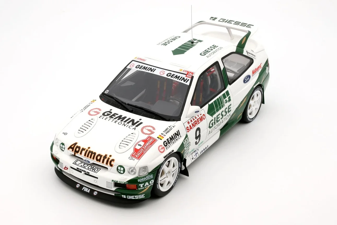 Ottomobile presents this 1/18-scaled Escort RS Cosworth resin model driven by Bruno Thiry (and co-driven by Stéphane Prevost), finishing in a commendable 4th place in the 1994 Sanremo Rally.