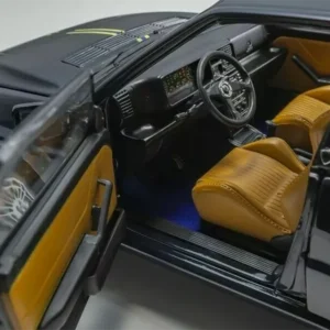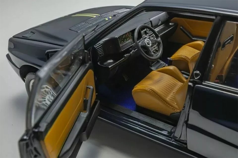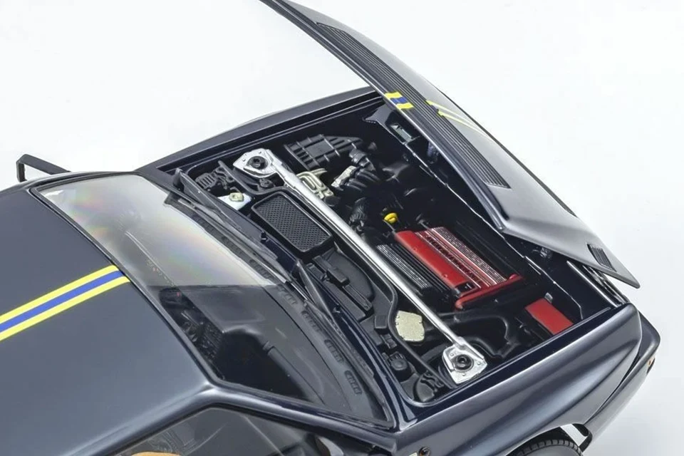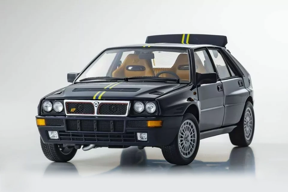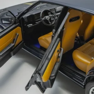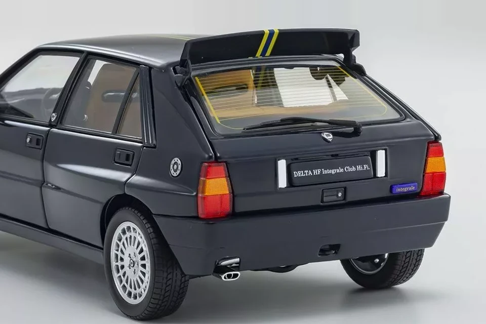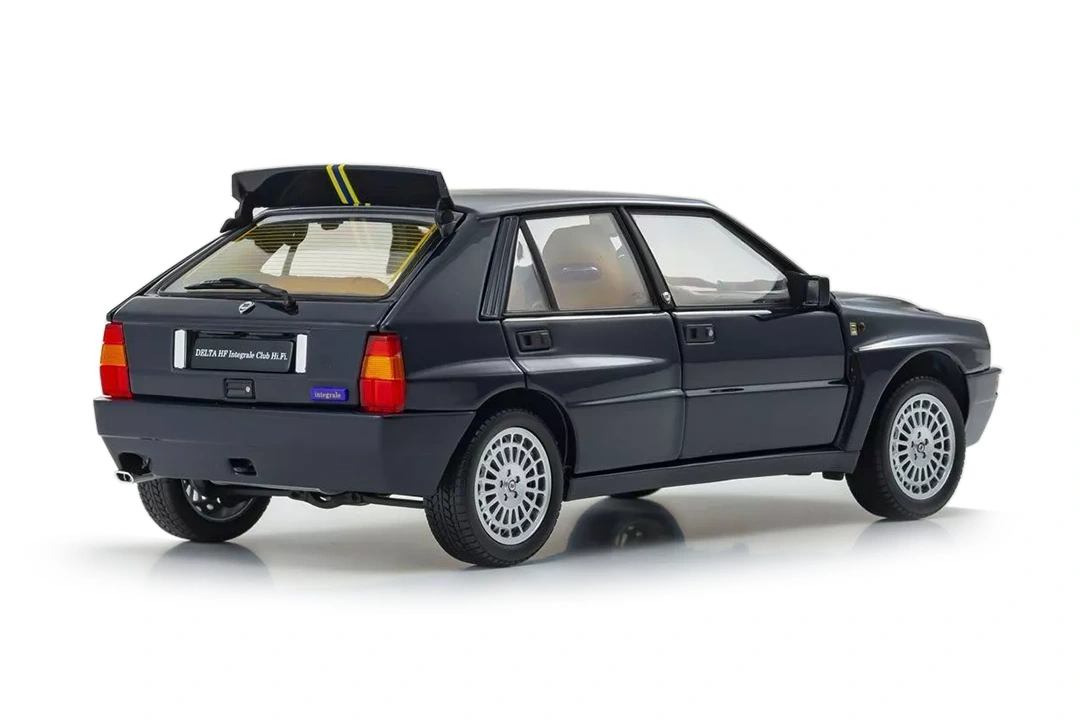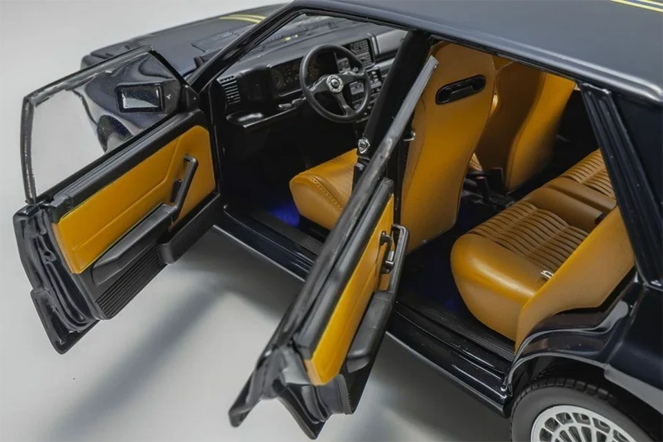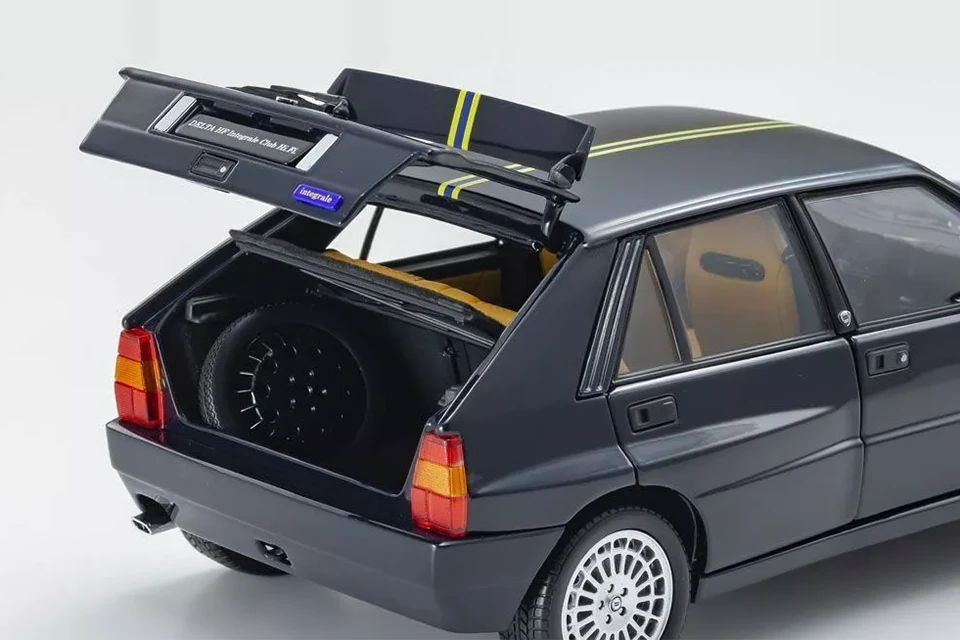 As a tribute to its incredible rallying history, Lancia produced several special editions of the Integrale. Kyosho reproduces in 1/18 scale one of the last ones, already in its Evoluzione 2 phase and called ‘Hi-Fi Club’. Noteworthy details include the boot (with spare wheel, carpet and tilting tray) and the interior, which was upholstered in Poltrona Frau leather in the original car.