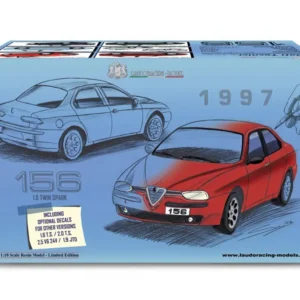 A new era for Alfa Romeo led by designer Walter da Silva, who created this fantastic 156 saloon model with a fresh, contemporary style. Presented here by Laudoracing in resin finished in one of its most characteristic colours, ‘Nuvola’ blue (a three-coat paint that changed its shade depending on sunlight incidence).