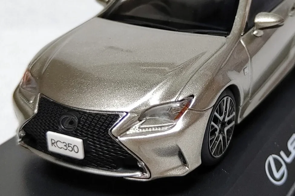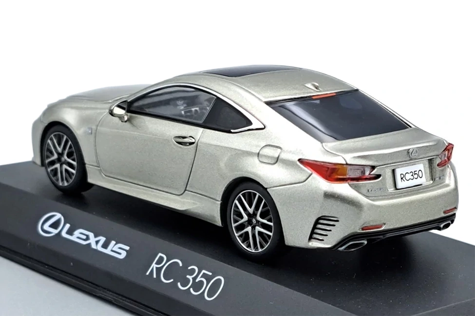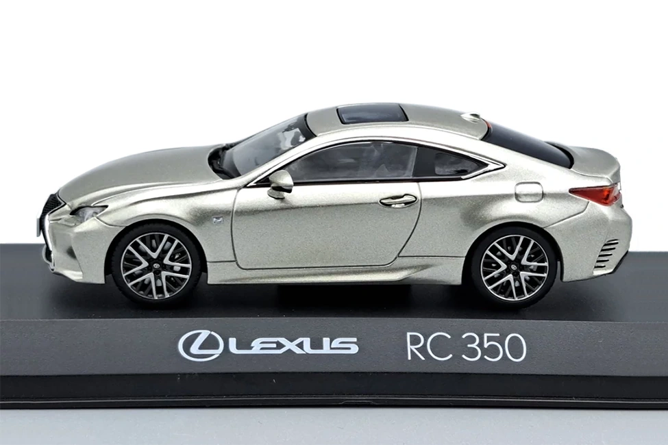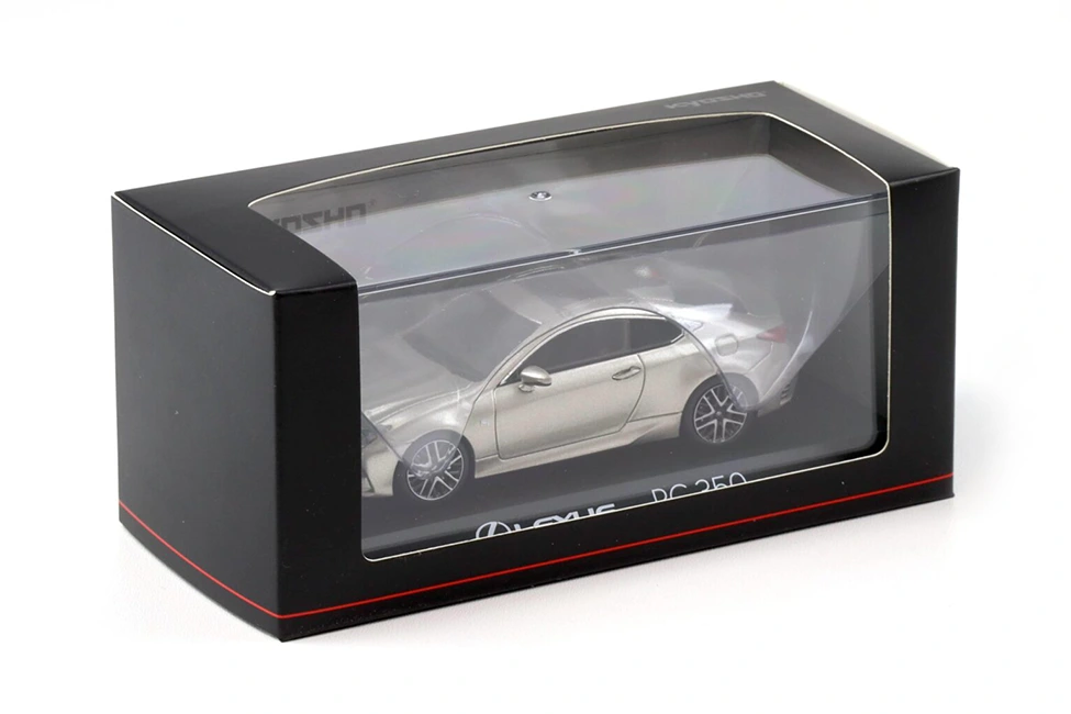 Kyosho’s 1/43 scale model of the Lexus RC. Very aggressive design to carve out a place in the D segment 4-seater coupés, where German brands dominate. This version is finished in a spectacular ‘Sonic Titanium’ grey shade. Always with the usual top quality from Kyosho.